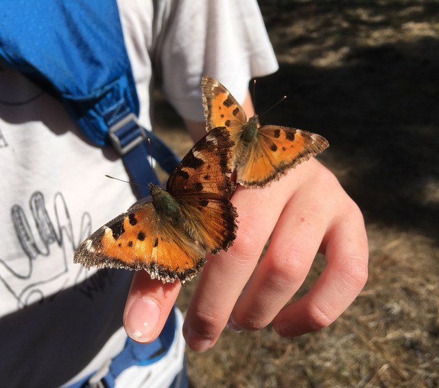 How can I help these butterflies during their boom cycle? While California tortoiseshells are hard to miss if you are driving mountain roads, you can slow down to help them get out of the way more easily. Then, we recommend taking a wander along a trail to watch them fly up in a cloud all around you!
