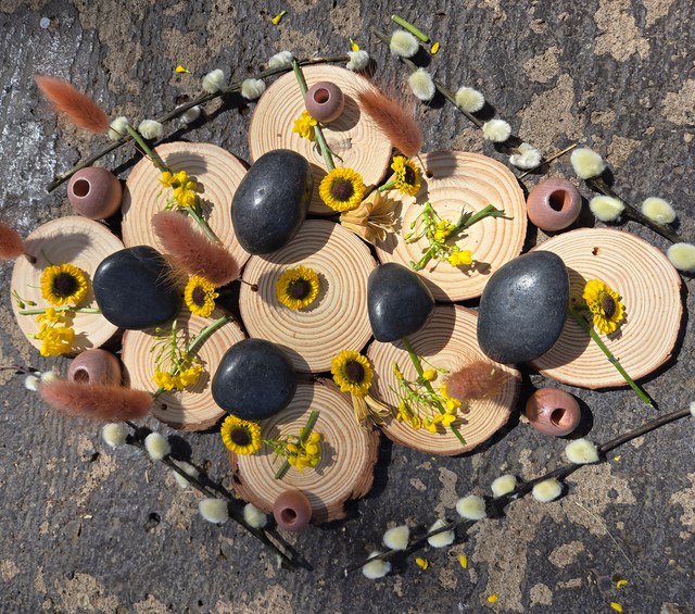 Place one special natural item in the middle. This is the heart of your mandala.