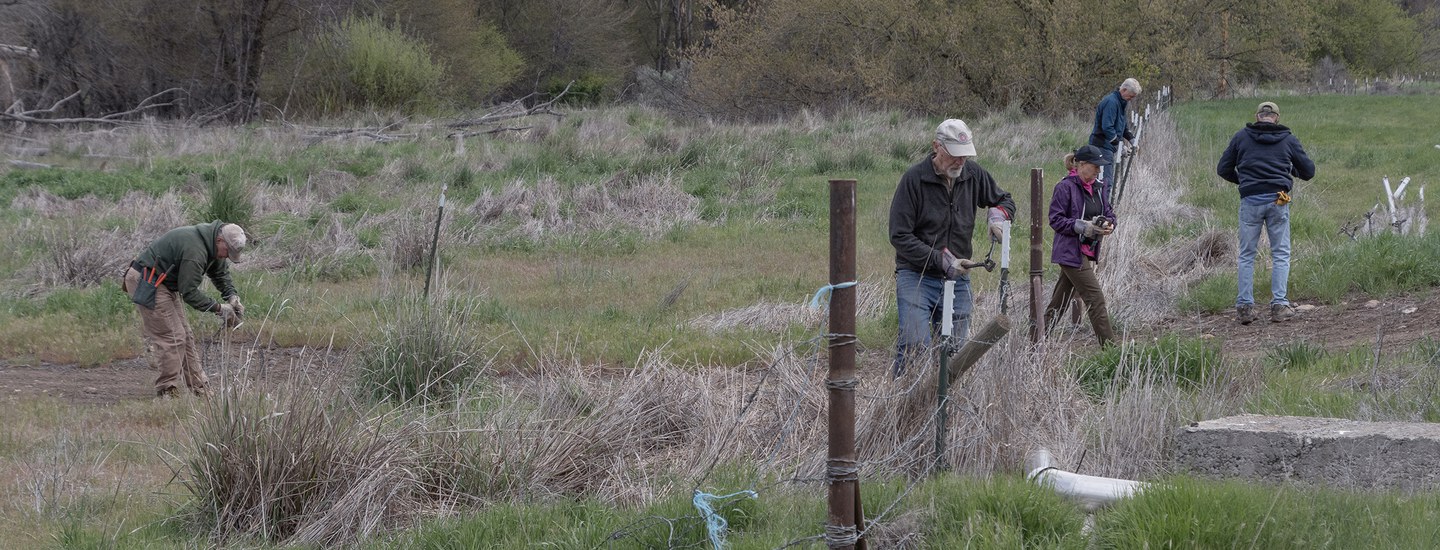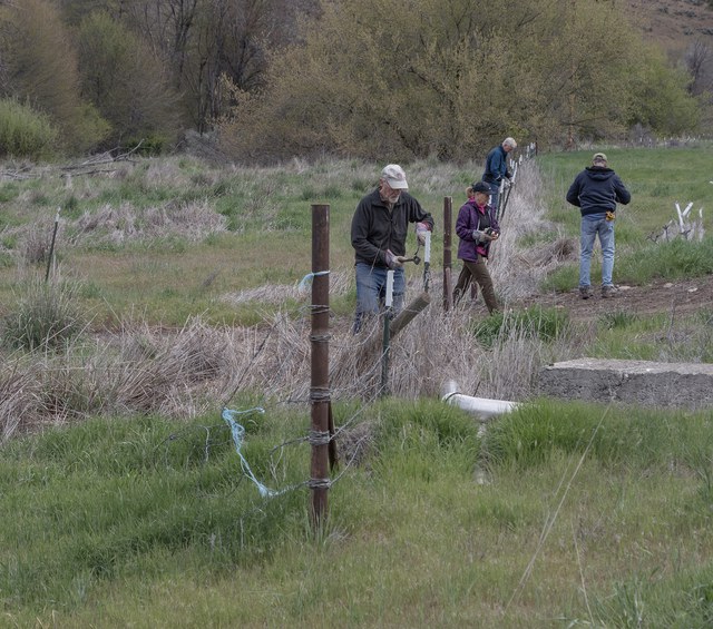 It may have been Friday the 13th, but that did not scare off the volunteers from helping remove old barb wire fencing and posts along Trout Creek at Priday Ranch. Volunteers were greeted with sunshine for the workday.